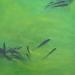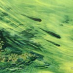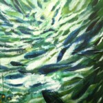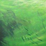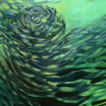 Les bancs forment subitement un théâtre d’ombres circulaire… En changeant de cap, les poissons vont perturber, impressionner, tromper leurs prédateurs. Puis, le danger écarté, le banc se désagrège brusquement, formant des colonies ondulantes dans une fluide densité. Doucement, certains s’éloignent du groupe, hésitent, se figent , cherchant le sens du courant, la direction à prendre, pour mieux poursuivre leur route …